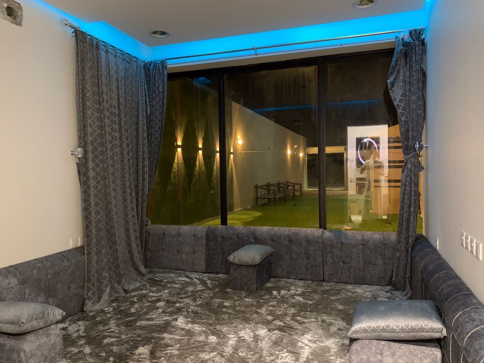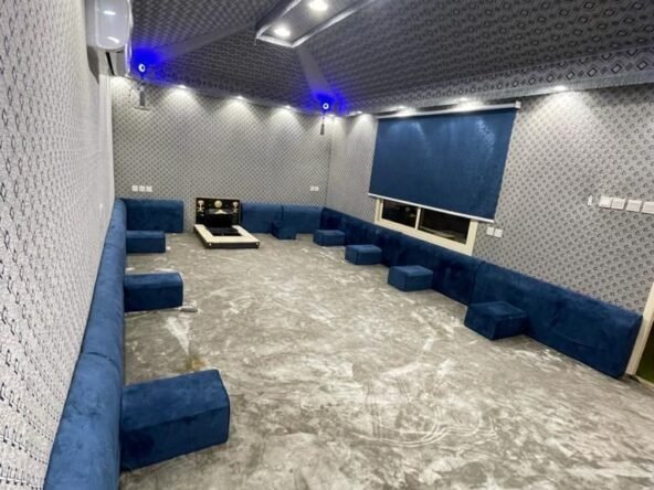 صالة + غرفة جلوس ارضيه + مطبخ مسبح+ العاب مائيه ملحق + دورة مياه خاصة جلسة خارجية المساحة 300 متر الموقع النقيب