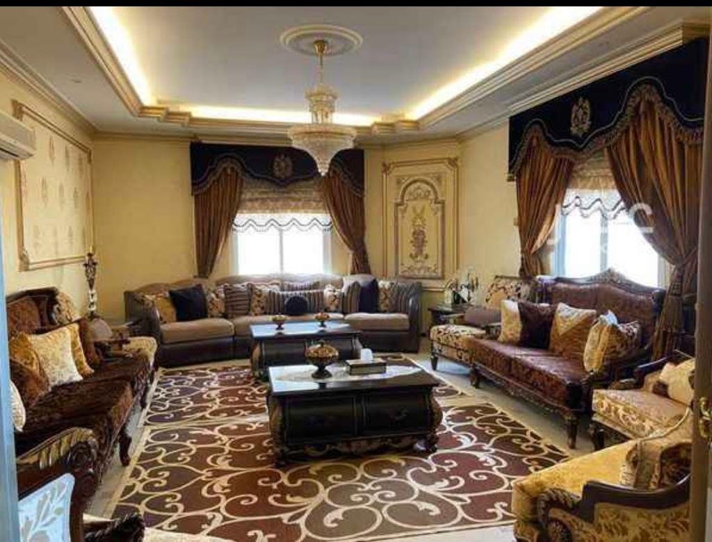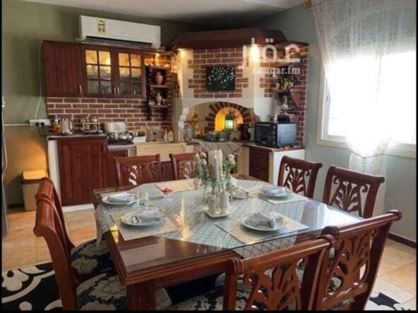 الدور الارضي فيها مجلسين وغرفة طعام وصالتين ومطبخ