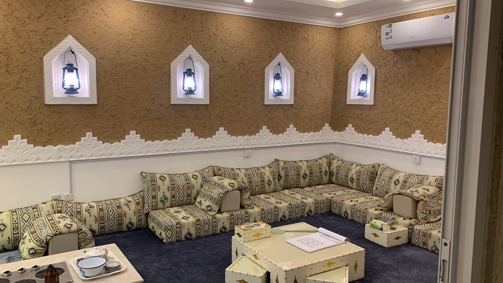 ومجلس داخلي ومقلط ومغاسل ودوره مياه للرجال وصاله ومجلس نساء بدوره مياه وحديقه جانبيه جنب الصاله ومطبخ داخلي ومطبخ خارجي وغرفه عامله بدوره مياه