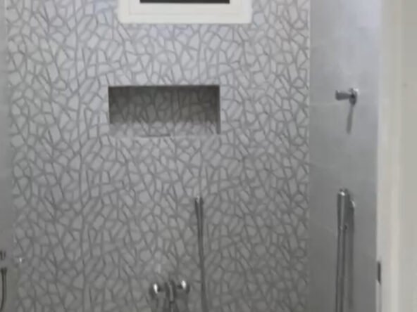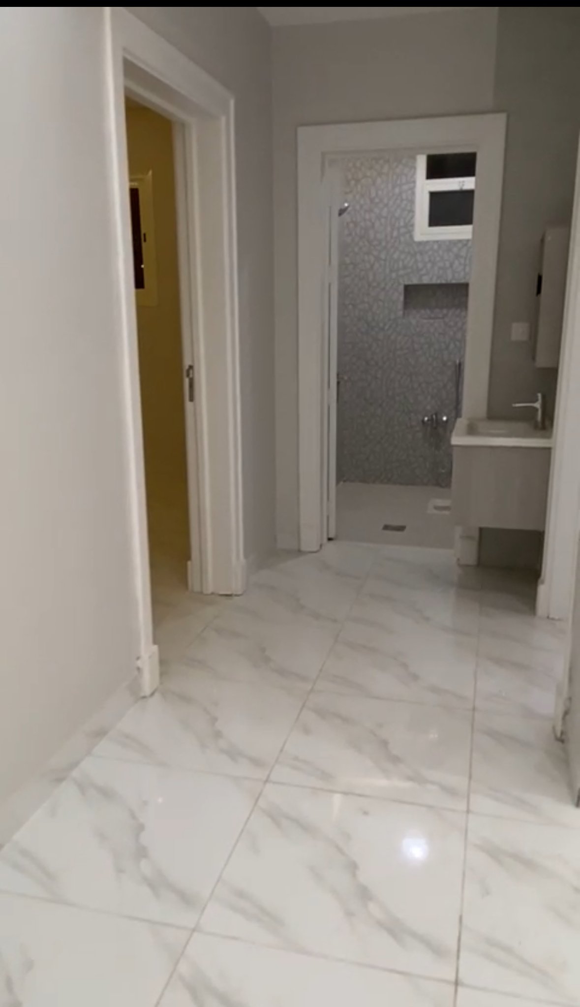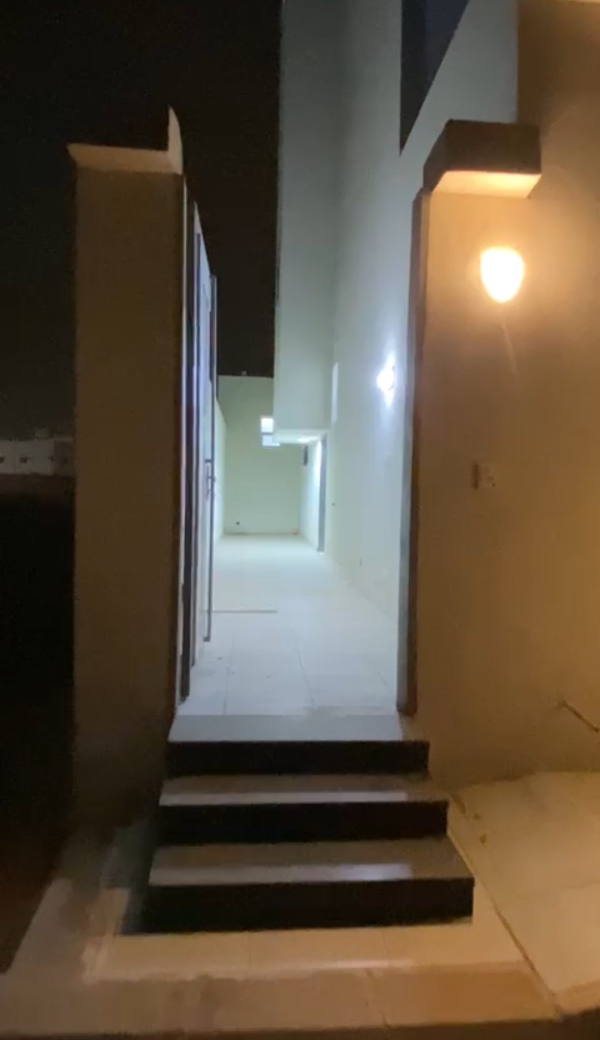 الدور الأرضي مكون من خمس غرف وصالتين وثلاث حمامات وغرفة غسيل ومدخل سيارة