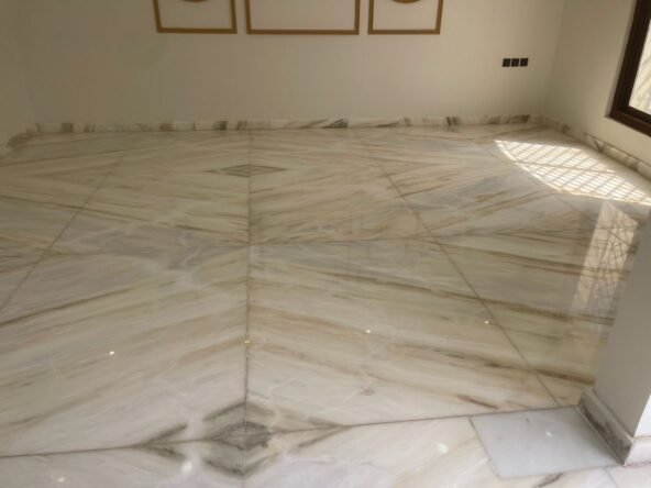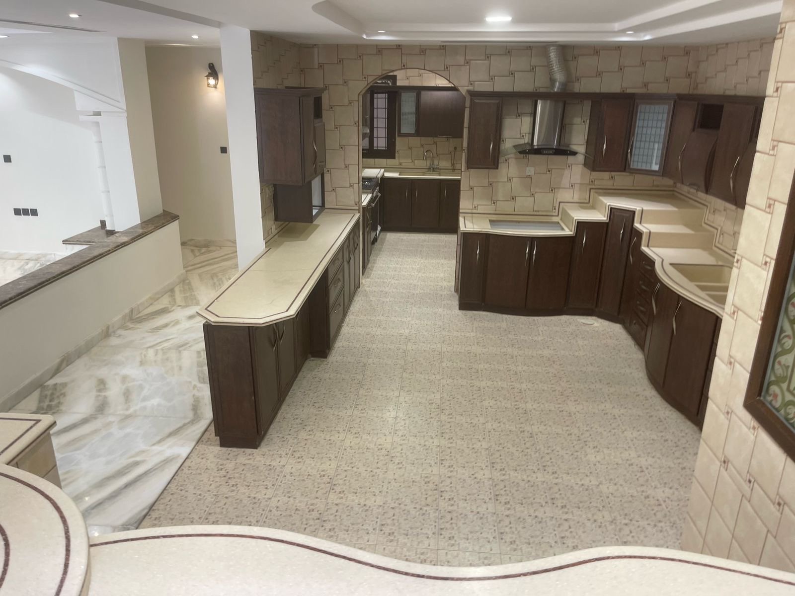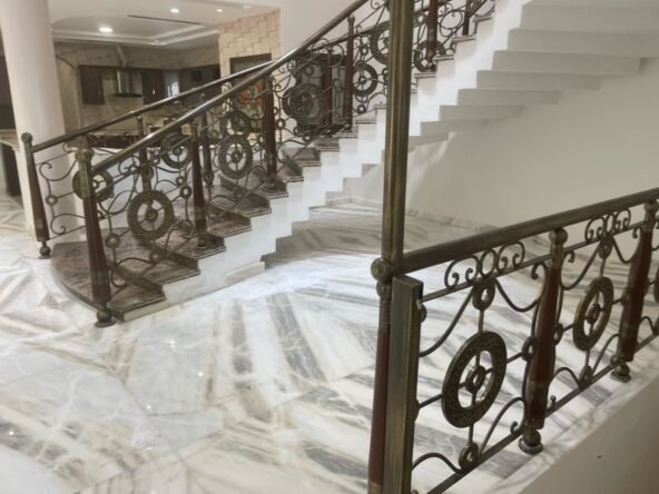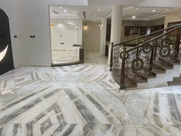 تكييف مركزي ومطبخ كامل ومشب جاهز وارضيات الواح روزا وبلاط الحوش ارتك .