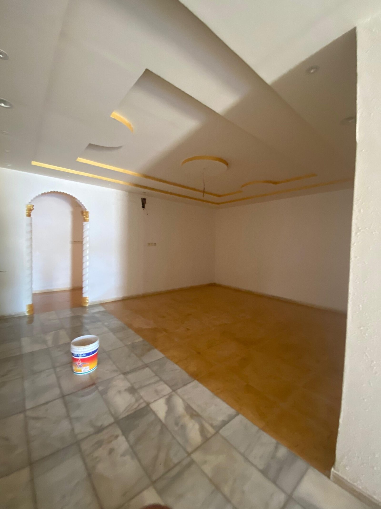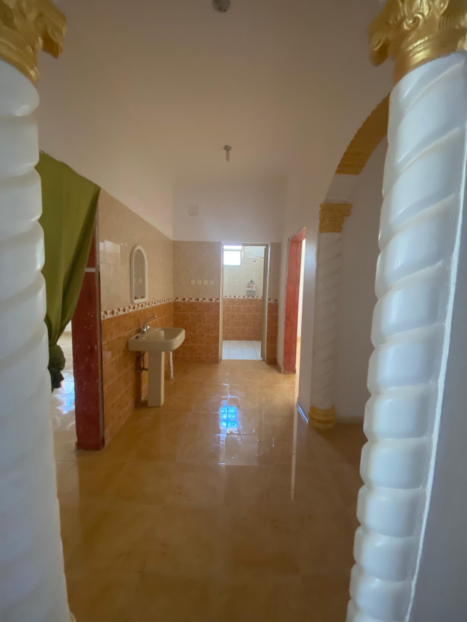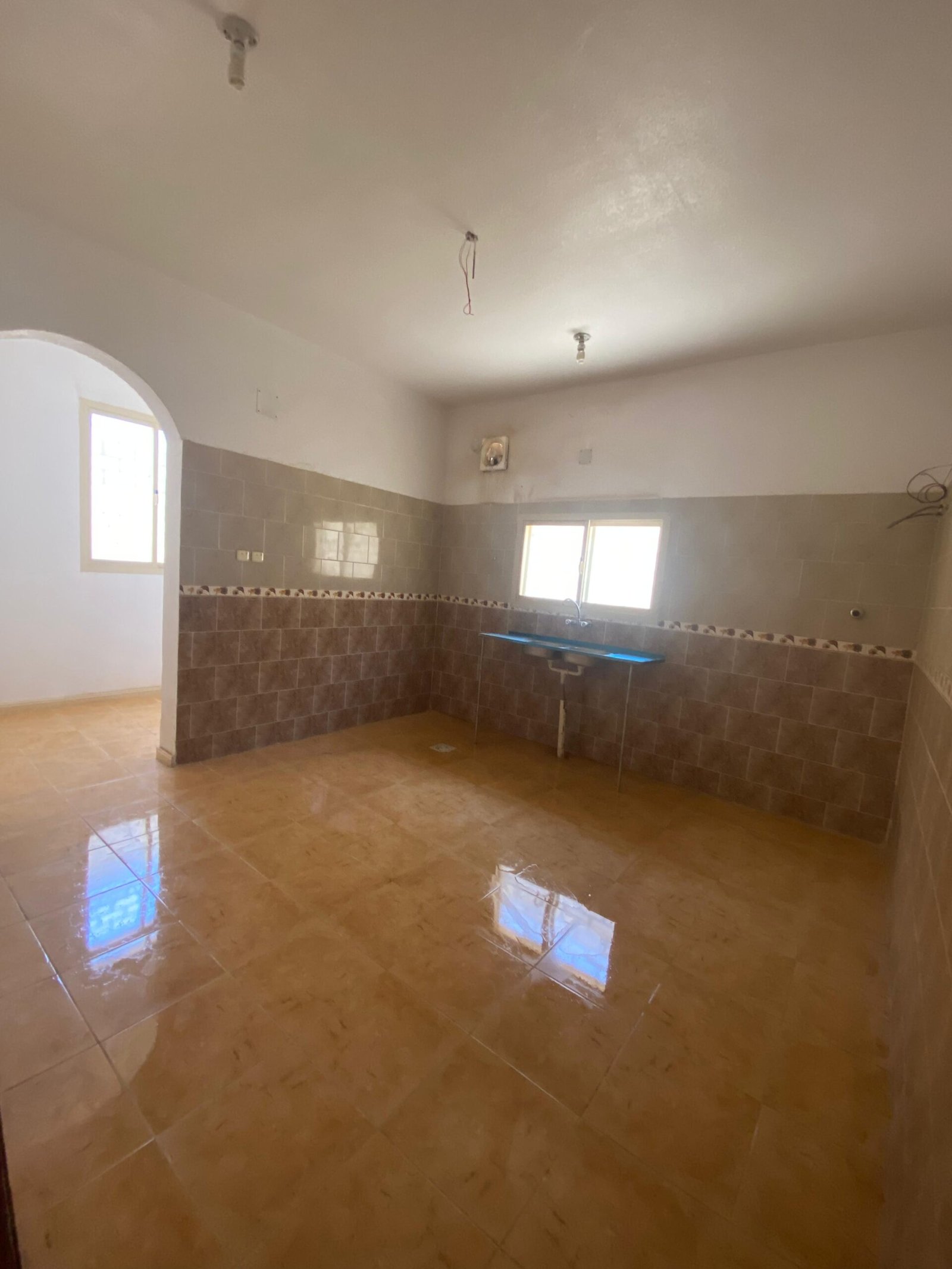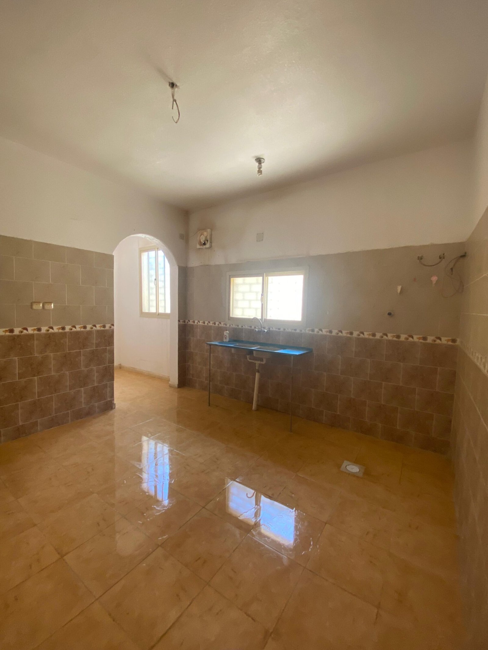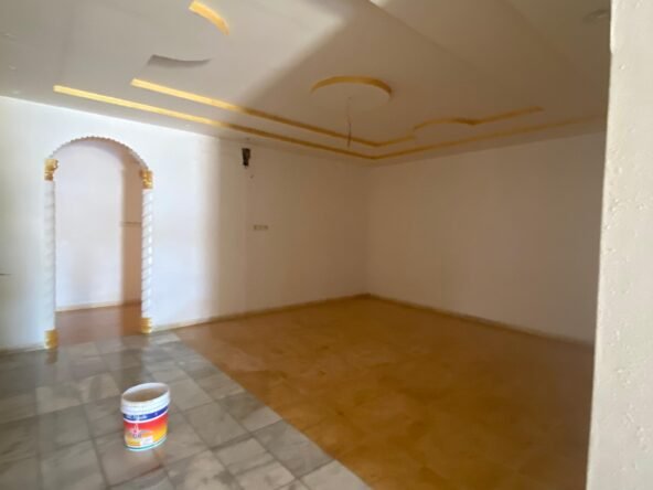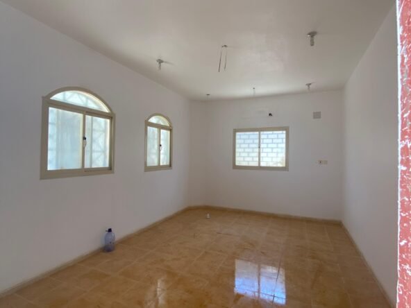 الدور الارضي فيه مشب وملحق مع دورة المياه والمقلط برضوا كذلك وبعد ذلك مجلس نساء وصالة كبيرة وبعدين فيه قسمين كل قسم فيه غرفتين بدورة مياه وكل مطبخ يوجد به مخزن